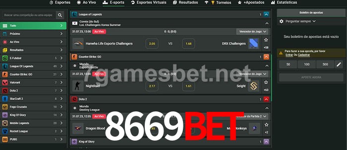 O 8669bet oferece uma grande seleção de opções de apostas em e-sports com probabilidades competitivas